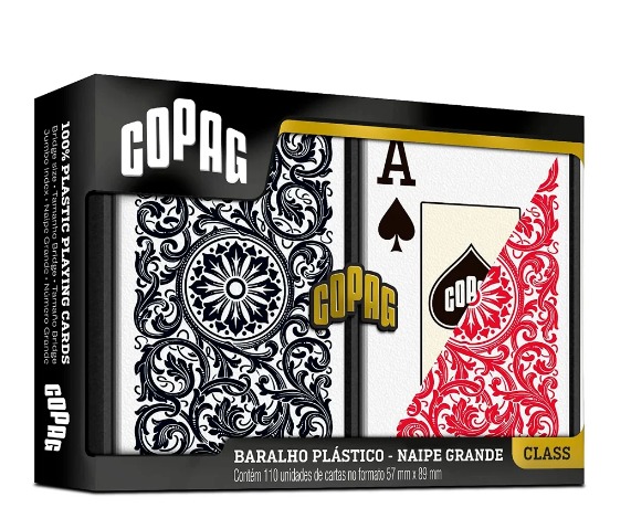 Com acabamento refinado e impressão de alta definição, o Copag Class garante conforto ao manuseio, embaralhamento suave e excelente desempenho tanto para jogos casuais quanto profissionais. Além disso, é lavável, ideal para ambientes como áreas gourmet, bares, clubes e mesas de jogo.