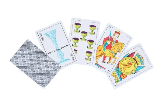 Com ilustrações tradicionais do baralho espanhol e naipe azul, apresenta visual elegante, impressão nítida e fácil identificação das cartas durante o jogo. É perfeito para jogos consagrados como Truco, Sueca, Escopa, Bisca, Chinchón, entre outros.