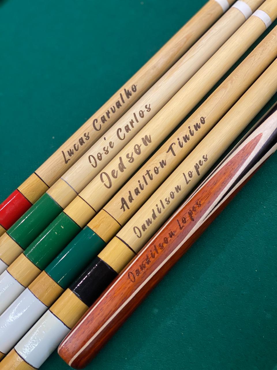 Oferecemos serviço de gravação personalizada exclusivo para tacos de sinuca, ideal para deixar seu taco ainda mais único e especial.