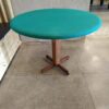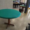 Mesa de carteado com tampo em MDF revestido com espuma e tecido acrílico verde, pé central em madeira maciça.