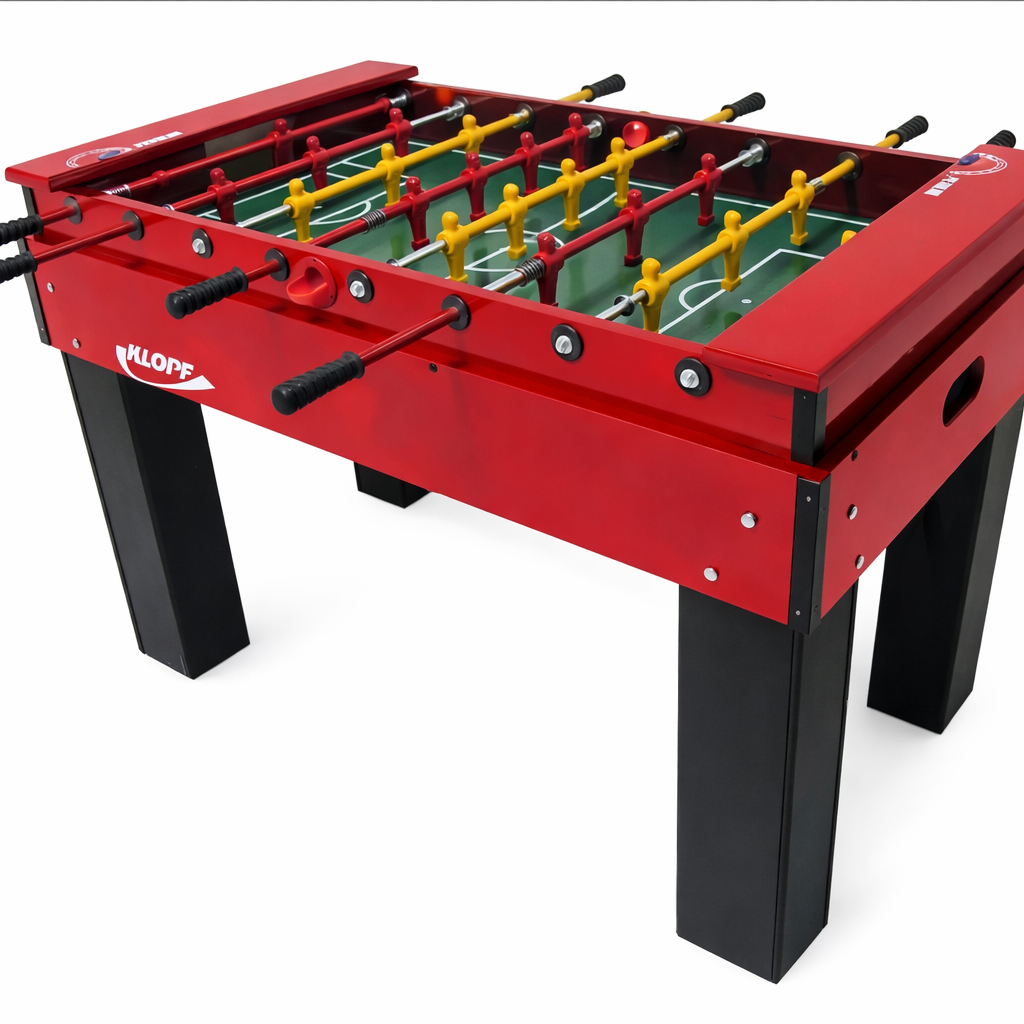 Em madeira tingida, pés em MDP, varão embutido, bonecos de alumínio, pintura em epóxi.