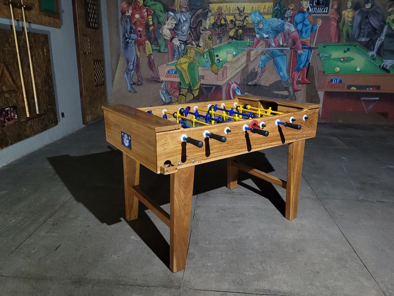 Mesa de Pebolim – Totó modelo residencial com jogadores em ferro embutido e estrutura em madeira maciça(Sucupira). Acompanha 03 bolinhas.