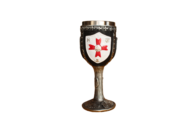 Taça temática estilo medieaval, pode ser usado para consumir bebidas ou para decoração. Feito em aço inox e os desenhos em resina 3D.