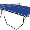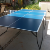 Medidas oficiais que atendem aos padrões da ITTF ( International Table Tennis Federation ). Acabamento em laca azul com linhas demarcatórias brancas. Bordas em tubos de aço pintados e pés de tubo com pintura Epoxi, dobráveis e com rodízio. Medidas: 1,525 x 2,74 x 0,76 m. O tampo possui 15 mm de espessura.